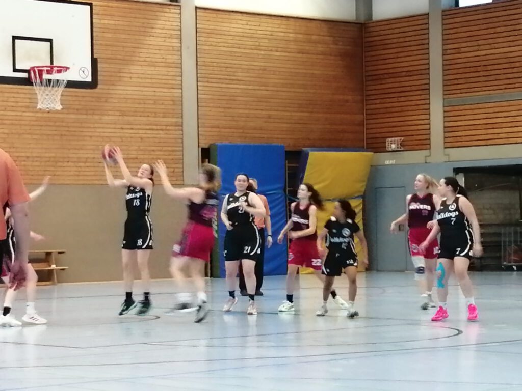 Allerdings gingen unsere Damen durch ein kleines Wechselbad der Gefühle: Nach dem Pausentee fanden sie zunächst zweimal den Anschluss, doch dann setzten sich die Gastgeberinnen auf acht und kurz darauf neun Punkte ab. Zum Ausgleich dieser Periode trugen vor allem wieder Vicky und Nina bei, unter anderem mit jeweils einem Dreier. Auch zu Beginn des Schlussviertels legten die Movers wieder, zum dritten Mal, einen 6:0-Lauf hin, so dass das Spiel beim Stand von 34:24 entschieden schien. Unser Team steckte jedoch weiterhin nicht auf und kam durch sieben Zähler von Vicky in Folge bis auf 34:36 heran, ehe die Mindenerinnen in der Schlussminute alles klar machten.